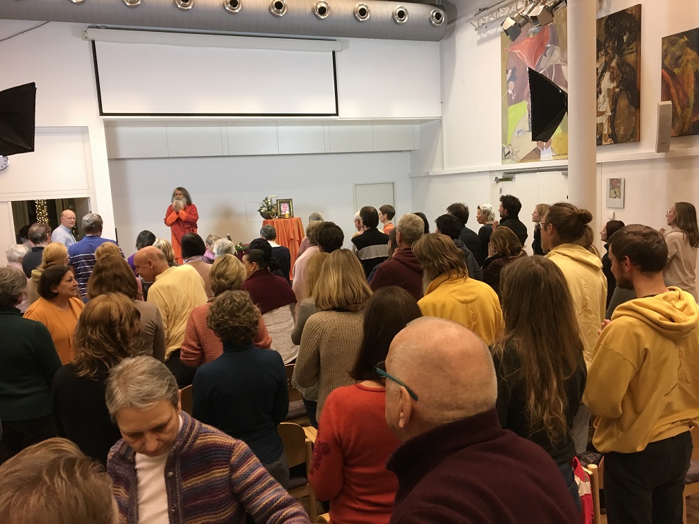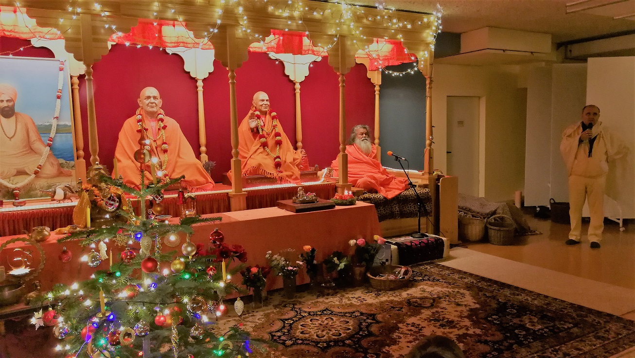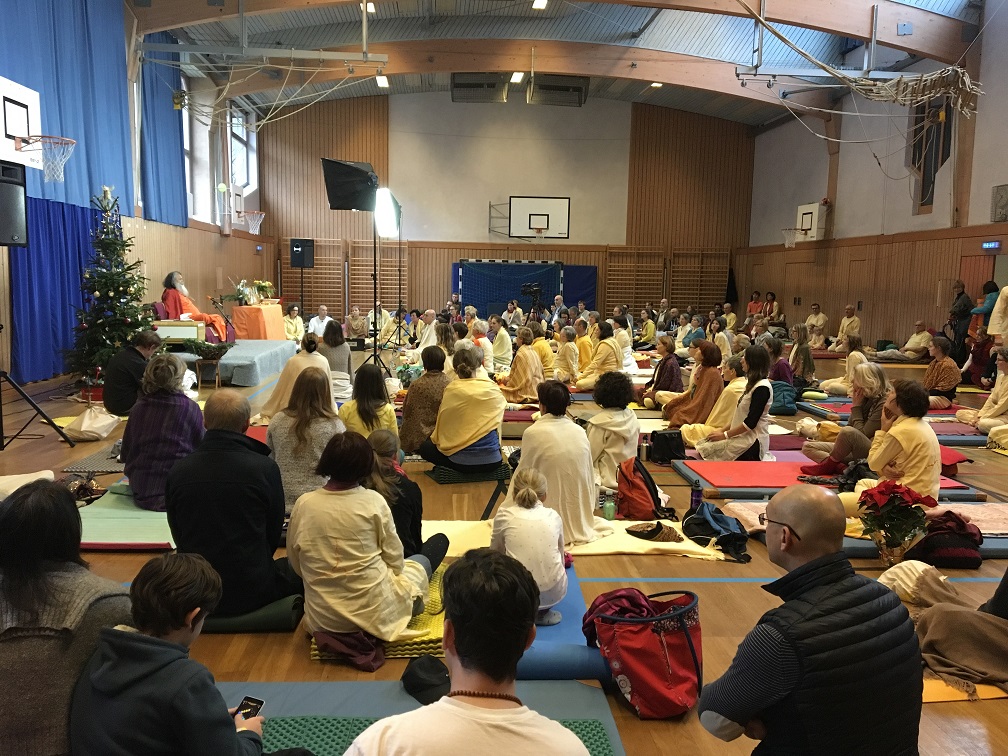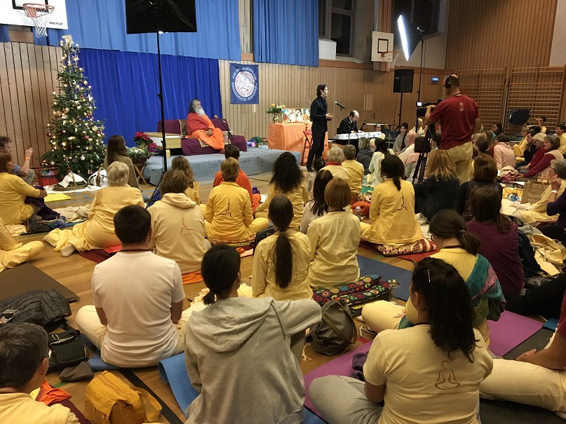 Yoga in Daily Life practitioners, teachers and disciples had the opportunity to celebrate Christmas with Vishwaguruji in Vienna at a special Christmas Satsang on Sunday 10 December 2017. Christmas songs were sung, and vice-president of the Vienna YIDL Society, Sagarpuri, thanked Vishwaguruji and all yoga teachers, caretakers and helpers in the ashram. The children were given their traditional "Christmas bag" with fruit and sweet treats, and everyone enjoyed delicious Christmas biscuits, which many had graciously brought with them. It was a beautiful and warm "get-together" with old and new friends and Vishwaguruji.