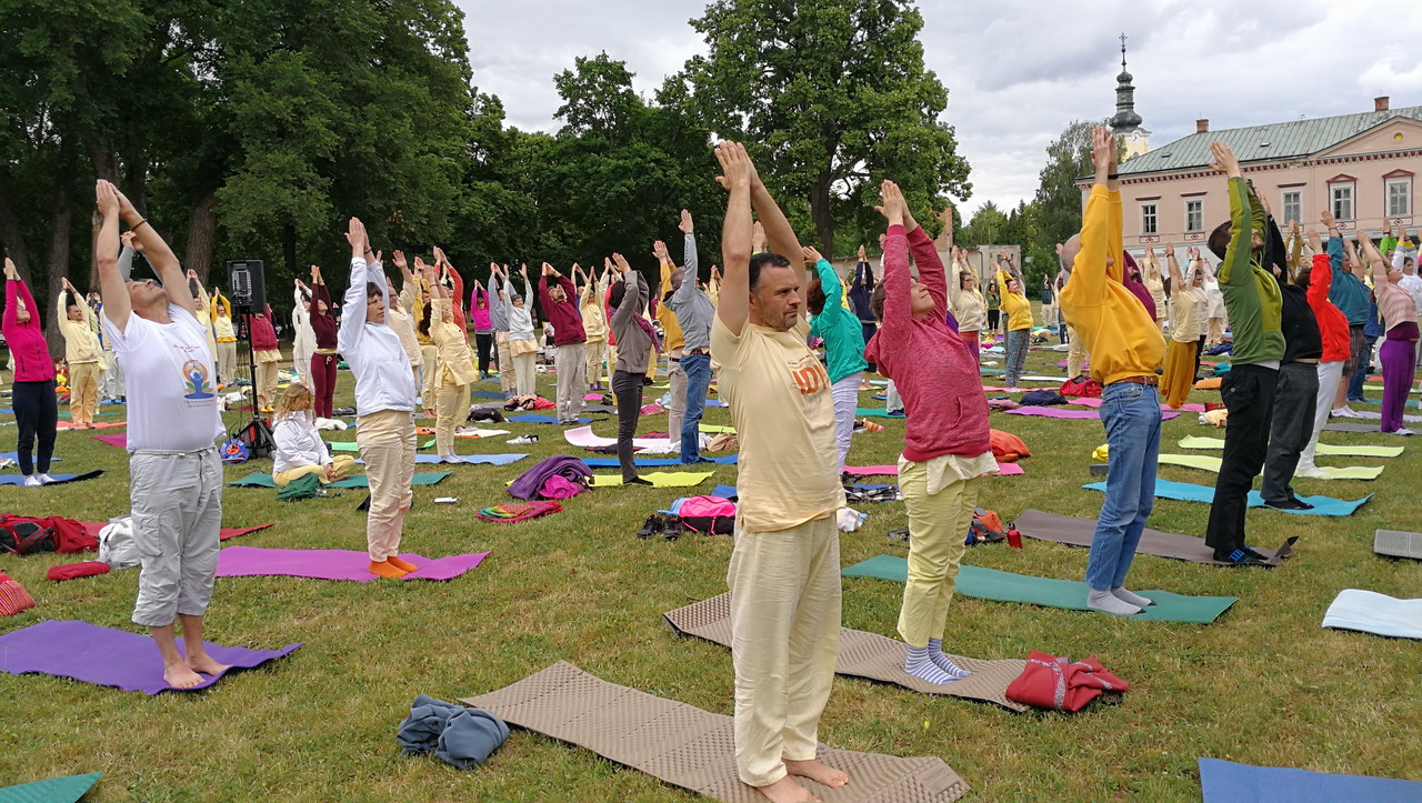 More than a thousand yoga teachers and students from Slovakia and neighbouring countries, gathered to honor this occasion by practicing Khatu Pranam, the emblematic practice of the Yoga in Daily Life System, together in the park, along with chanting of the Gayatri and Shanti mantras