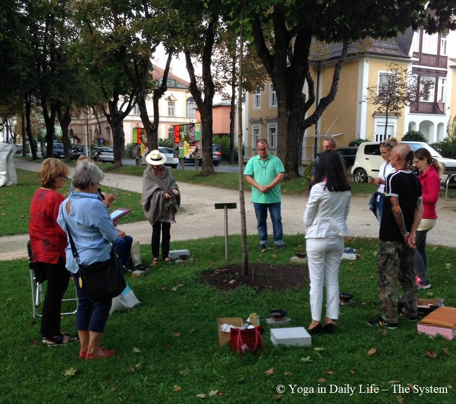 In the city park of Villach, the program was launched with a fire ceremony Agni Hotra for world peace, at the World Peace Tree on the evening of 21 September. The Peace Day observance was continued by chanting mantras and singing a prayer for peace.