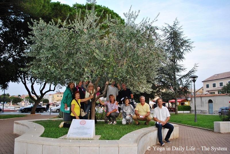 In Umag, a city that opened its doors to yoga long ago, the World Peace (olive) Tree has been a reminder of peace for local citizens, as well as visitors to the main city square in front of the city hall, for 8 years. A group of YIDL practitioners, assisted by friends from Labin, also visited the tree this year and held the program “Inner Peace for World Peace”. The city of Umag traditionally makes oil from the fruits of this and other trees in the city.