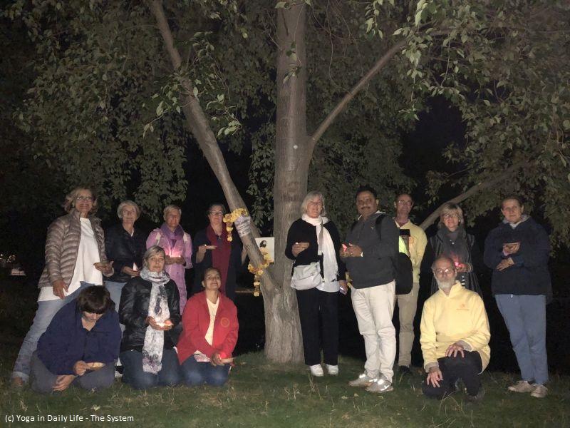 Yoga in Daily Life practitioners usually gather together at their local World Peace Trees, which have been planted by Vishwaguruji, to sing mantras, recite prayers and practice meditation.
