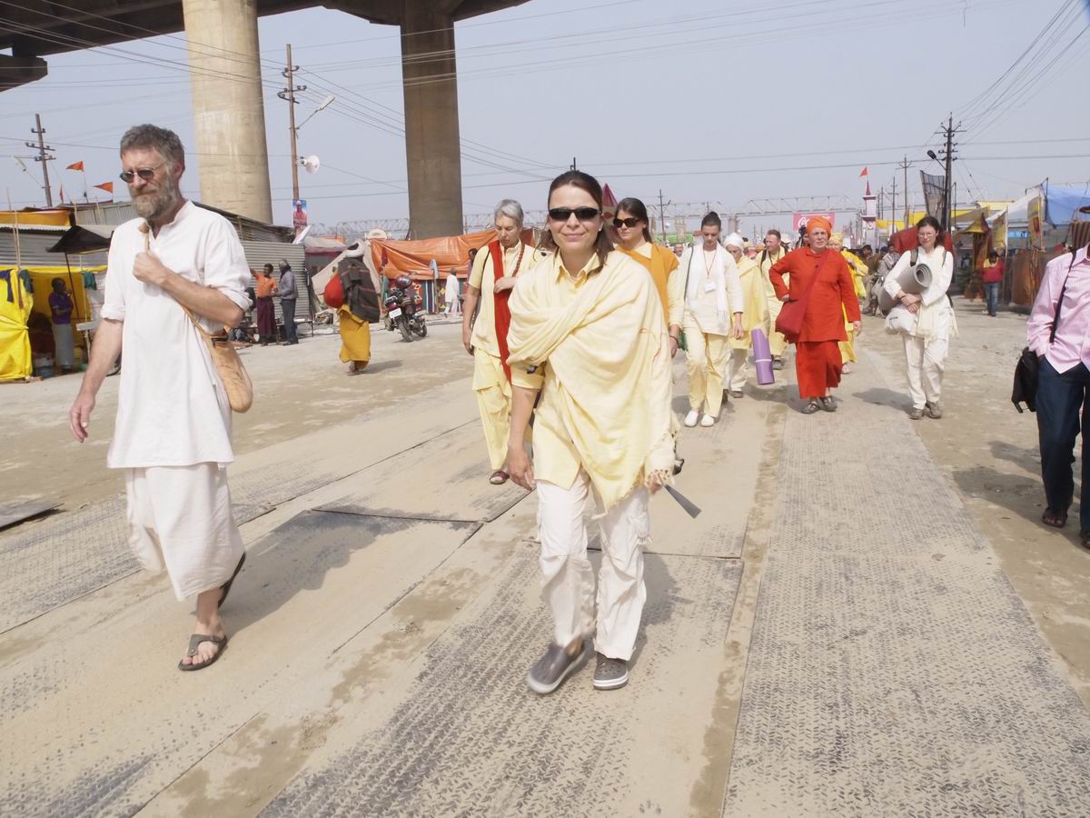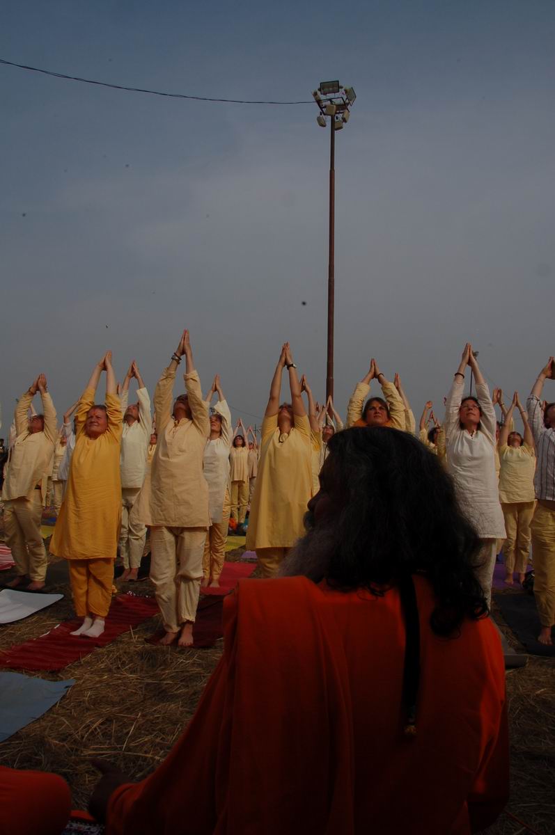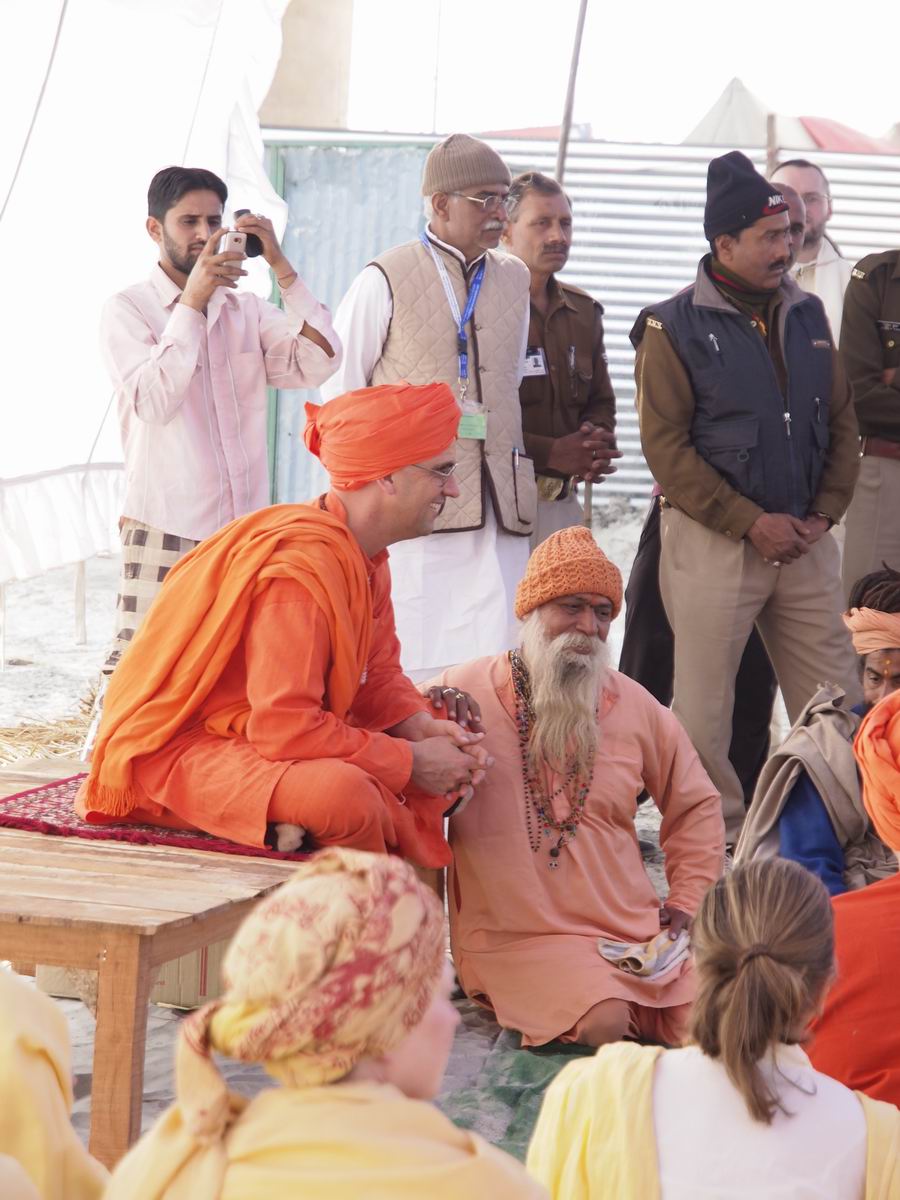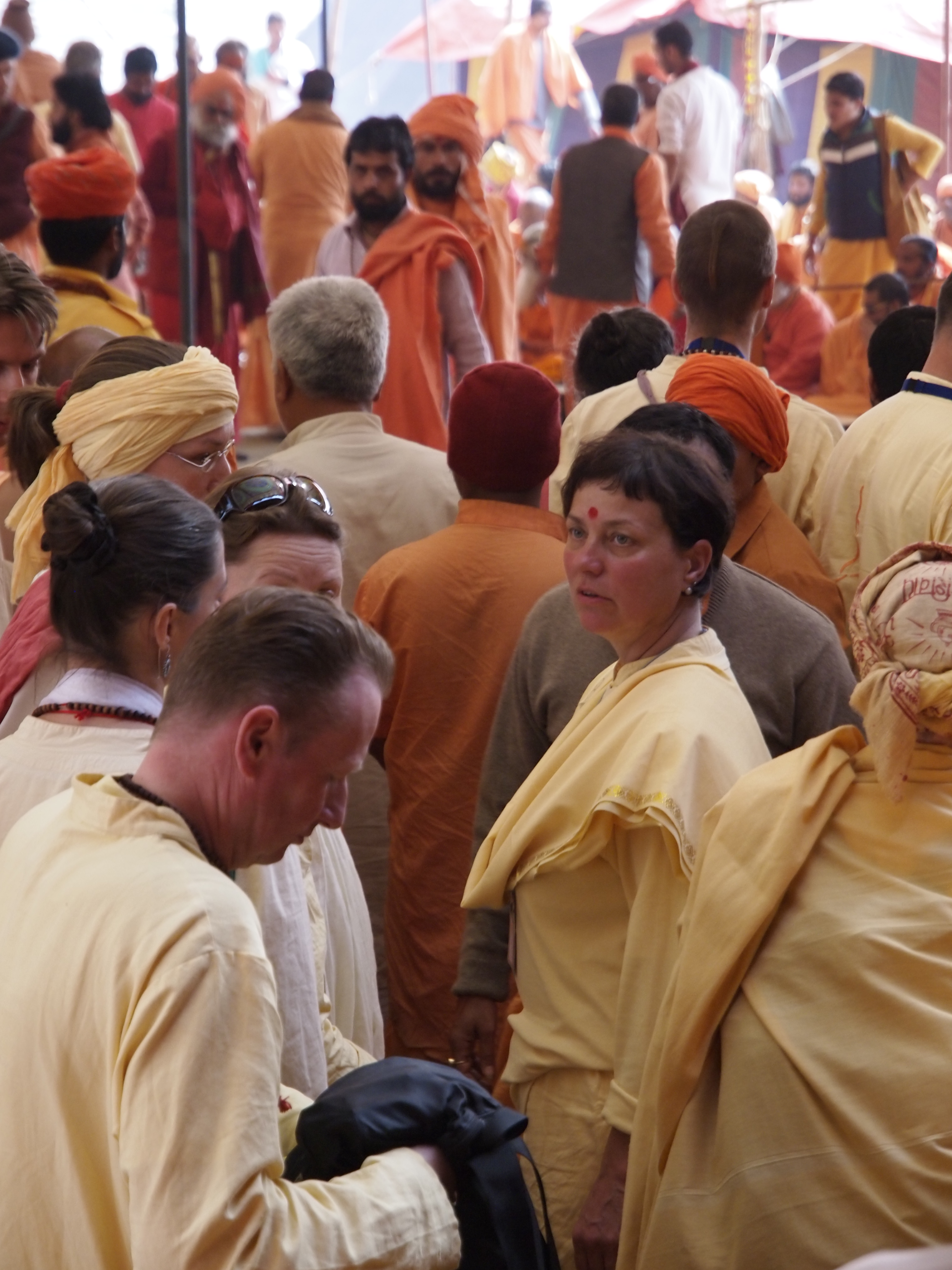 European bhaktas awaiting the chance to make Pranam and offering to all Mahamandaleshwars present at bandara.