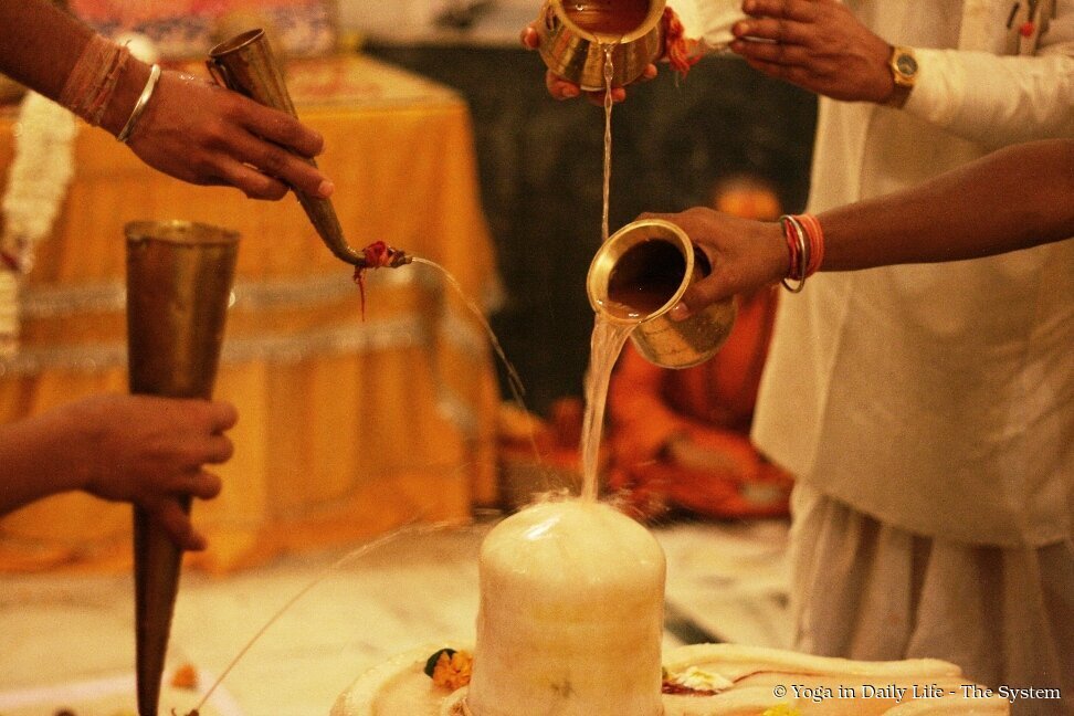 In Shiva temples worldwide, abhisheka – the ceremonial bathing of the Shiva Lingam – is performed continuously throughout the night with water, milk, honey and other sacred offerings. As mantras echo through the temples, the atmosphere becomes charged with divine energy and rising consciousness. During the abhisheka, sacred mantras such as Om Namah Shivaya and the Mahamrityunjaya Mantra are reverently repeated.