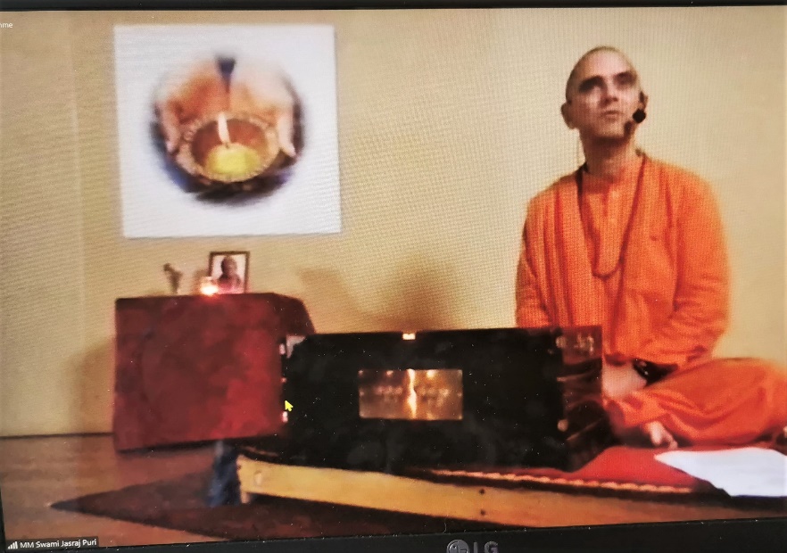 Swami Madhuram Puri, from Yoga in Daily Life New Zealand, sang a bhajan (spiritual song) “Prakash Punja Amrita He Sagar Sri Dipa Hari Mahadani” by Paramhans Swami Madhavananda Ji about his guru, Bhagawan Sri Deep Narayan Sri Mahaprabhuji, who lived from 1829 to 1963 in Rajasthan. Sri Mahaprabhuji is revered as an incarnation of Lord Vishnu, an embodiment of love, wisdom and mercy. This bhajan extols that Sri Mahaprabhuji is the source of light whose wisdom and words shine upon the whole world like a rain of nectar, awakening the knowledge within us, the capacity to recognise that in every atom is the light of God.