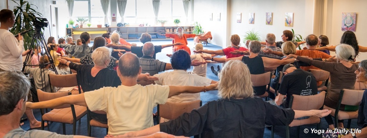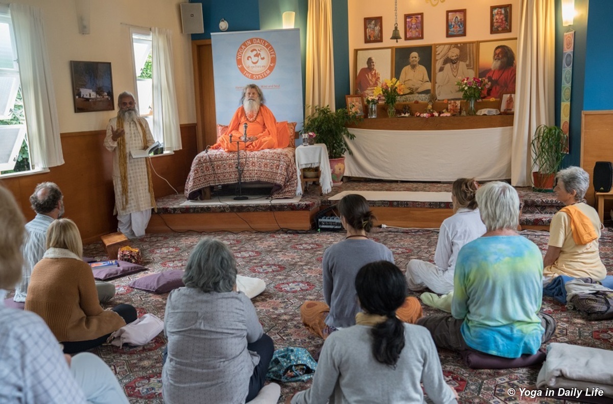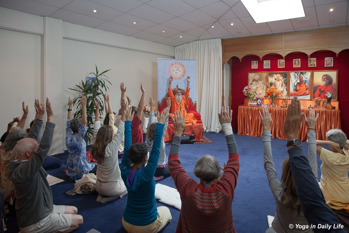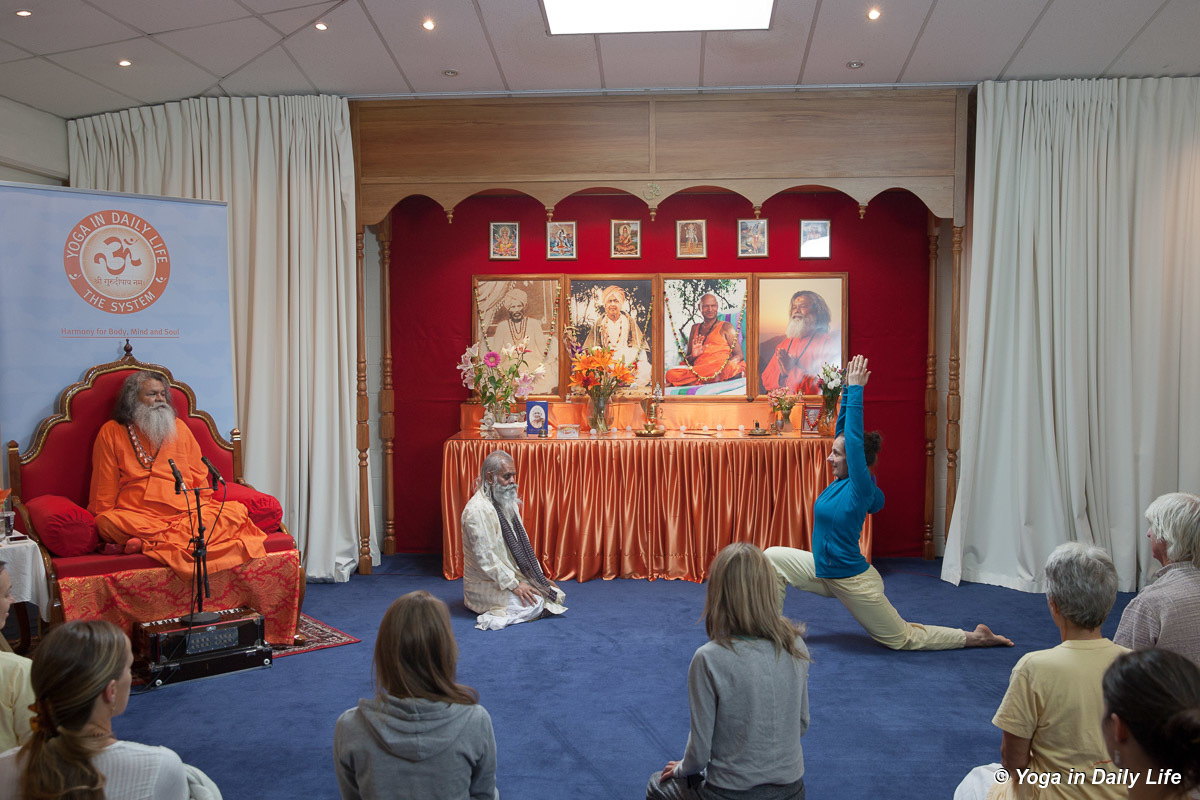Vishwaguruji gave theoretical and practical lectures and satsangs about how to manage everyday stress through using simple yogic techniques. In particular, Vishwaguruji explained the Brahmari Pranayama technique and OM chanting, and suggested to practice these on a daily basis, not just for stress management, but to prevent certain health problems.