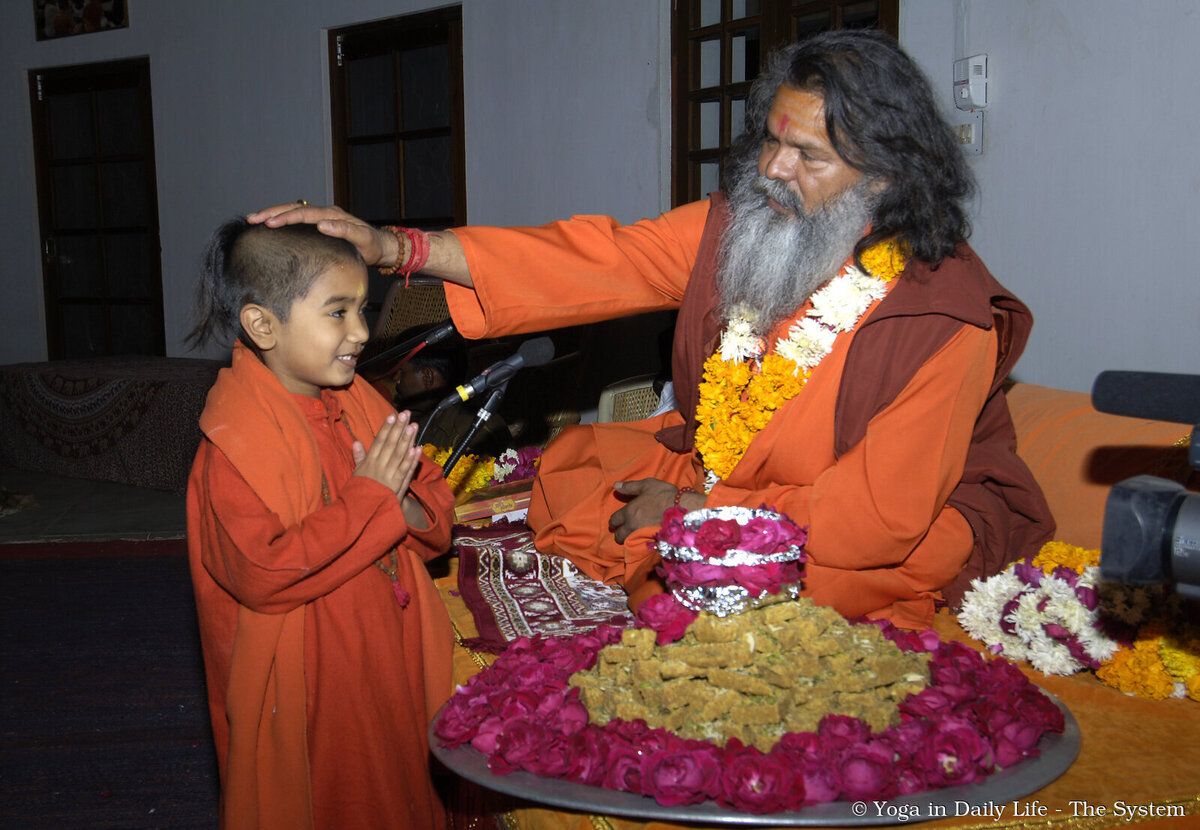 For many years, Vishwaguru Mahamandaleshwar Paramhans Sri Swami Maheshwaranandaji, Vishwaguruji, prayed to Sri Deep Narayan Mahaprabhuji, Sri Devpuriji and Divine Mother Chandandeviji, for the opportunity to guide a disciple from early childhood in accordance with Vedic culture, traditions, and the teachings of the OM Sri Alakhpuriji Siddha Peeth Parampara. In 1999, his prayers were answered. A message was sent to all Yoga in Daily Life centres announcing that Vishwaguruji had adopted a newborn child as Manas Putra.