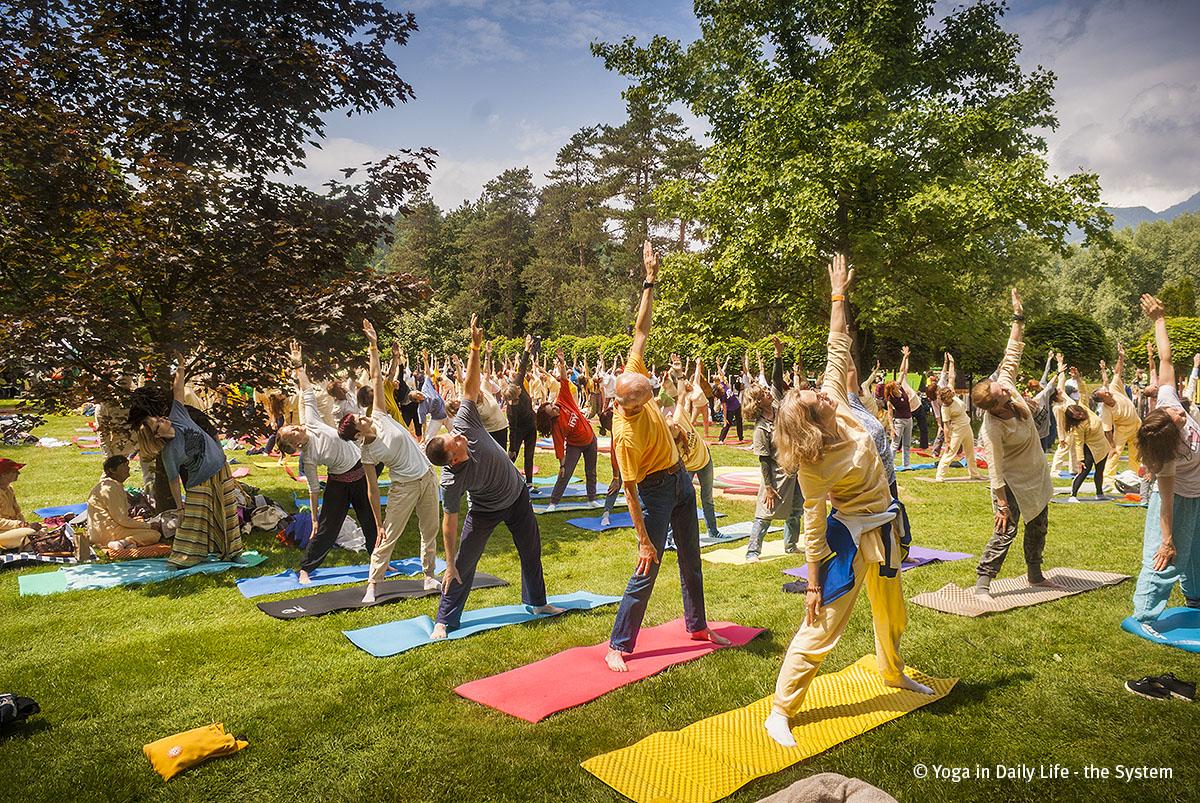 Miraculously, a rainy morning transformed into a wonderful sunny day, so all could practice yoga on the beautiful green meadow. Participants and guests enjoyed practicing the Bari Khatu Pranam sequence of asanas beside the impressive symbols of the human chakras, an installation that was created by Yoga in Daily Life in Mozirski Park some years ago.