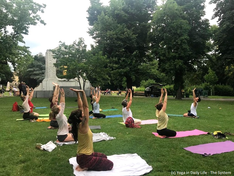 In the Vienna City Park, near the famous monument of Johann Strauss, there was free yoga in the meadow.