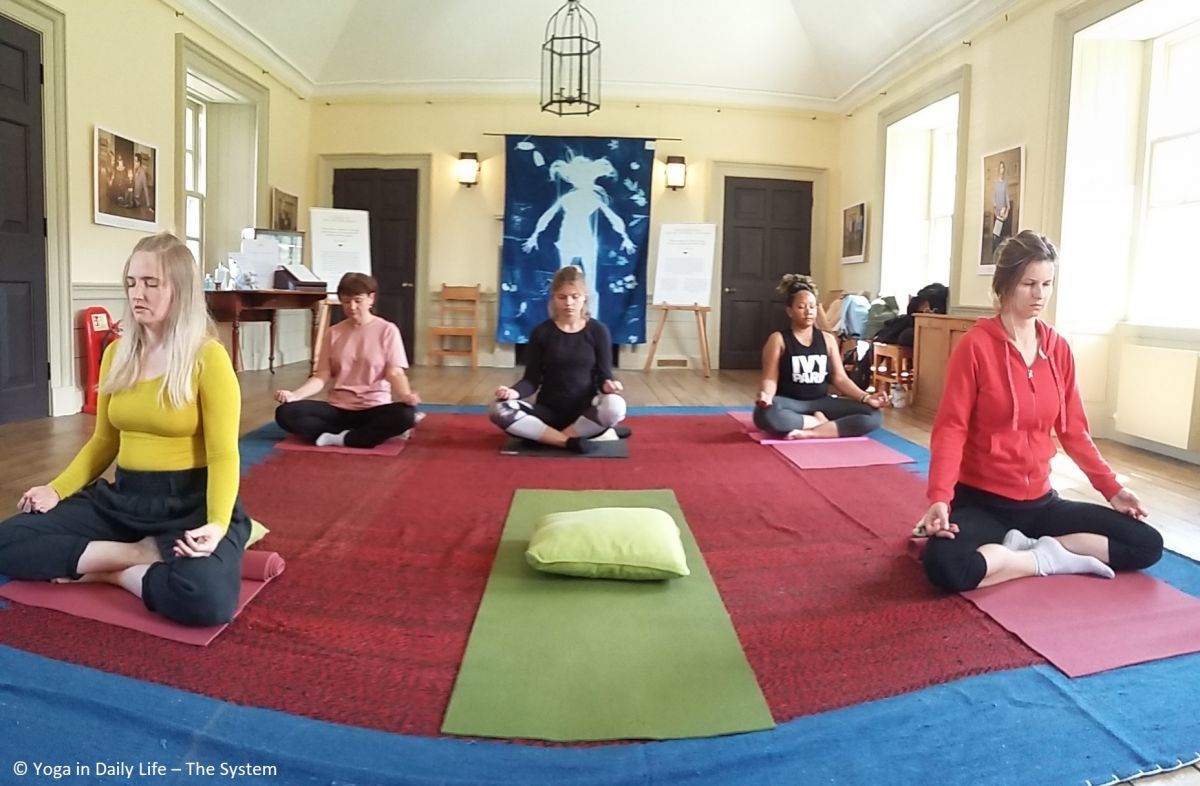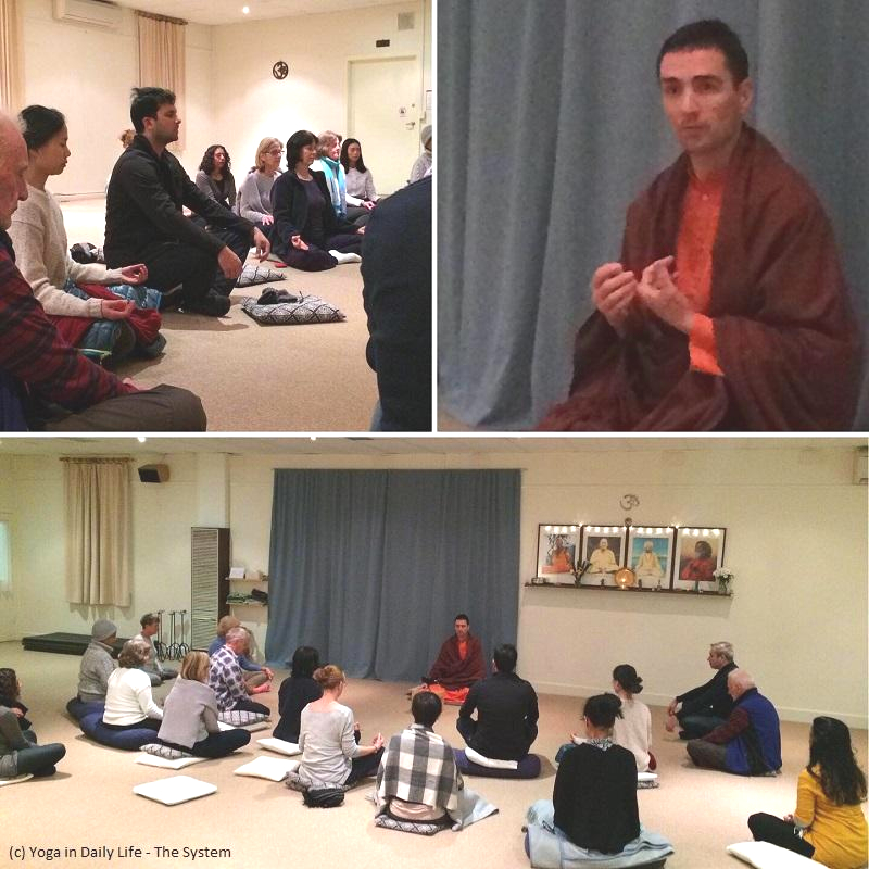 The yoga class was followed by a group meditation, singing of bhajans (devotional songs), and then talks were given about the origin and lineage of the YIDL System, then about IDY and lastly about the importance of developing a regular sadhana (disciplined practice).