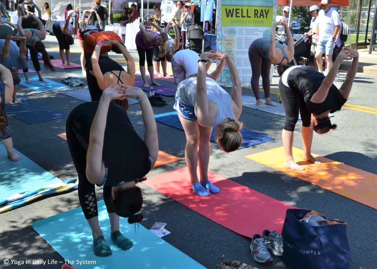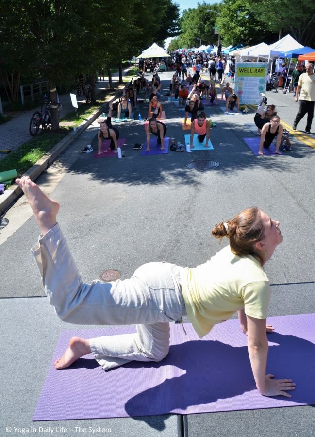 In Alexandria, Virginia (near Washington DC), teachers and members of Yoga in Daily Life commemorated IDY by participating in the annual WellRay Festival in Del Ray, Alexandria devoted to promoting health and wellness. YIDL teachers taught an outdoor class to a large crowd and volunteers staffed a YIDL display table throughout the half-day fair, answering questions about the YIDL System, distributing coupons for free classes, and offering YIDL and Chakra books for sale.