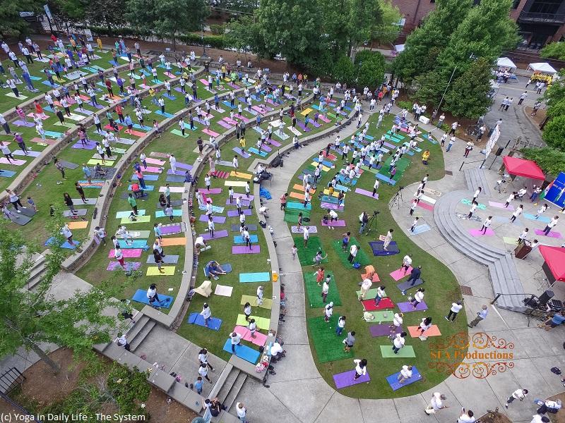 A big function took place in Atlanta, Georgia, on 23 June with the Indian Consulate of Atlanta and the YIDL team, including Swami Prempuja and the Purohit family, presenting yoga asanas and mantras on stage. More than 900 people participated in total.