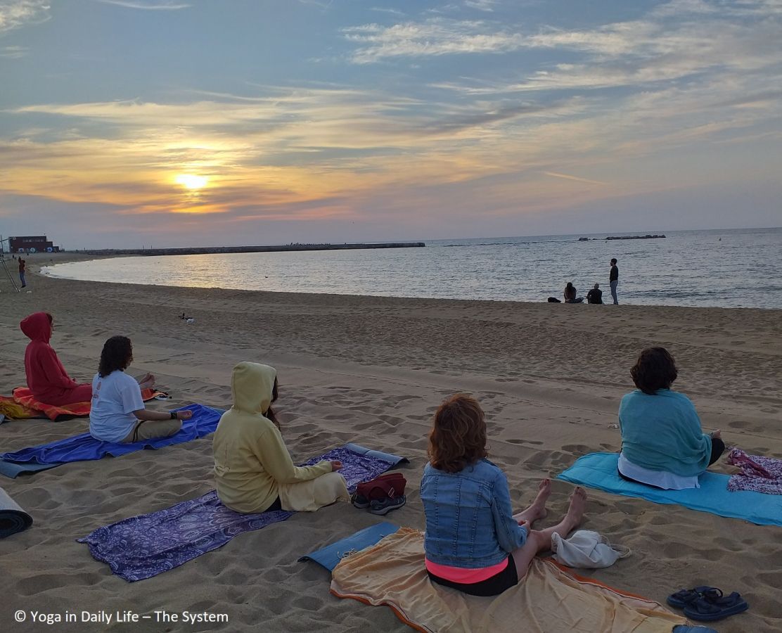 On Friday 21 June the day started with a Brahmamuhurta (pre-dawn) meditation at Nova Icaria beach in Barcelona, a very special way to celebrate IDY and summer solstice, by greeting the sunrise and meditating.