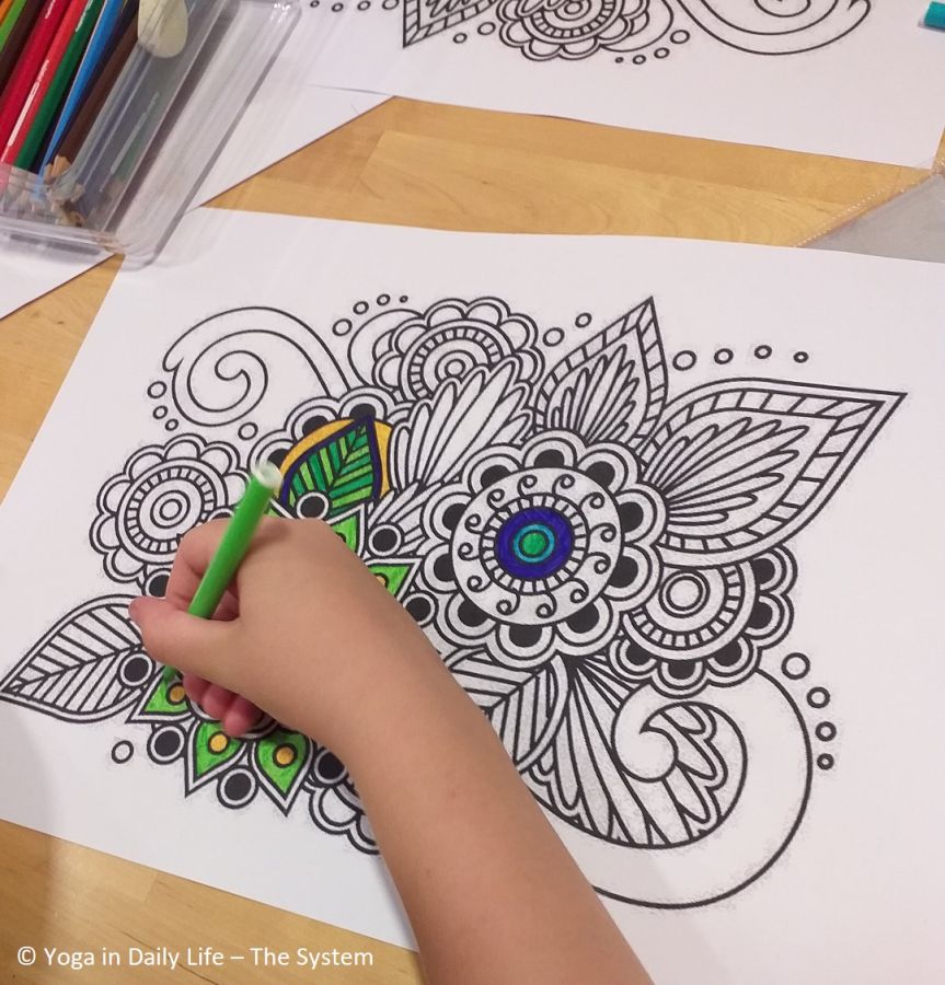 Earlier in the week, on Wednesday 19 June, a Mandala Workshop was organized at the yoga center, in honor of IDY, for the children who regularly attend the Kids Yoga class, which runs throughout the year. Like the adult classes, children work on balance, coordination and breathing and are also taught values such as teamwork and respect towards everybody. They colored-in giant mandala pictures and practiced their favourite animal asanas.