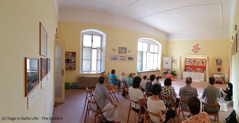 Promotion of the Olomouc event was itself was a great benefit for the local citizens, who learned more about what yoga is when Czech Radio responded to the promotional advertising in trams (streetcars) and broadcast an interview with a Yoga in Daily Life teacher Pavla Šrámková. Sadhvi Mantrapuri had a lecture in the yoga center, inspiring new and experienced yoga aspirants. She spoke very sensitively that yoga can give everything to modern people, all that they need. Yoga can help one to improve their physical, mental, social and spiritual health. She talked about simple practical things being part of yoga, for example, minimizing personal needs, eliminating waste generation and pollution, and protecting nature. Through yoga, we heal ourselves and our surroundings, the whole planet; and through purification, we return to our nature.
