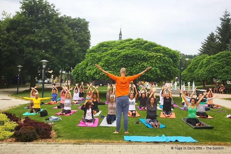In Banská Bystrica we celebrated International Yoga Day on June 23, in the park under the SNP Memorial. Three sessions of exercises were prepared: for beginners, for children, and asanas with pranayama. The yoga classes were part of the Slovakia Sporting event, with participants particularly interested in yoga exercises. 70 people joined in with the yoga practice during the morning.
