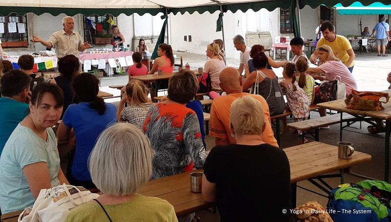 In the heart of Slovakia – in the city of Martin, on Sunday 23 June, about 100 practitioners took part in five workshops on two stages, in the very pleasant environment of the botanical garden of the Slovak National Museum. The most popular workshops were Yoga Against Back Pain led by Dr Schmidtova and Yoga For Women led by physiotherapist Ms Minarikova. The second stage was dedicated to yoga for children. Delicious vegetarian sambar daal was served to all at the end of the day.