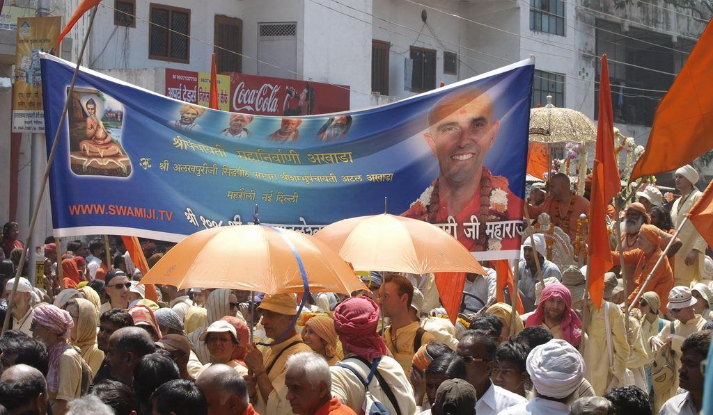 At occasion of 12-th anniversary of his inauguration into Mahamandaleshwar of Maha Nirvani Akhara Vishwaguru Mahamandaleshwar Paramhans Sri Swami Maheshwarand Puri Ji Maharaj, took a dip in the Holy Ganges at Brahmakund in Haridwar.