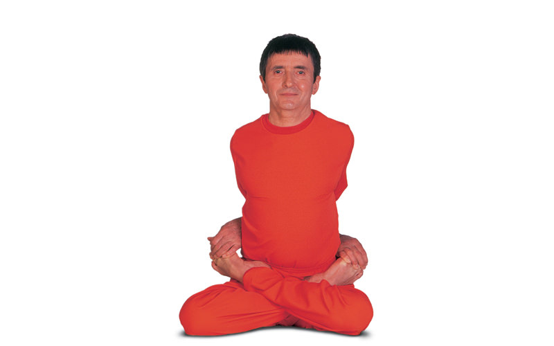 Posaďte se do padma ásany. >Zapažte zkřižmo, pravou rukou uchopte palec pravé nohy a levou rukou palec levé nohy. >Zhluboka se nadechněte. >S výdechem se pomalu předklánějte, až se čelo dotkne podložky. >Dýchejte normálně a uvolněte celé tělo. >S nádechem se vraťte do výchozí polohy.