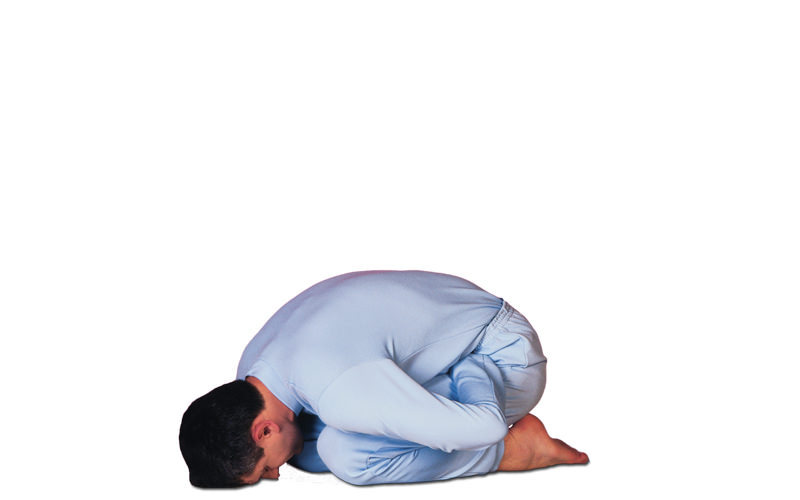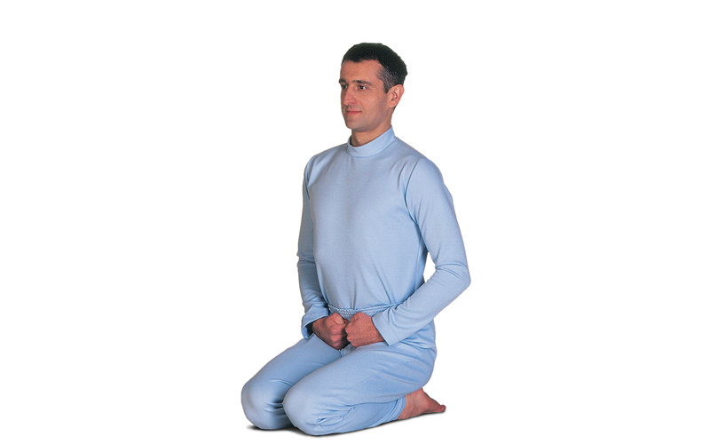 Nimm Vajrasana ein. > Einatmend strecke den Oberkörper von der Taille nach oben. Mache mit beiden Händen eine Faust (die Daumen liegen innen) und lege die Fäuste in die Leistenbeuge. > Ausatmend beuge dich mit geradem Rücken langsam nach vorn, bis die Stirn den Boden berührt. Das Gesäß bleibt auf den Fersen. > Normal atmend bleibe in dieser Position und entspanne dich bewußt. Spüre den Druck der Fäuste auf den Unterleib, der sich bei der Einatmung verstärkt. > Einatmend komme langsam und mit geradem Rücken hoch. > Ausatmend nimm die Ausgangsposition ein.