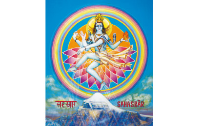The Bindu Chakra is situated beneath the whirl of hair at the tip of the head. In the picture of the Bindu is a Lotus with twenty-three petals. Its symbol is the moon, which supports the growing of vegetation. Lord Krishna said: “Becoming the nectarine moon I nourish all plants” (Bhagavad Gita XV/13). Its Divinity is Lord Shiva, who is always portrayed with the crescent moon in his hair. The Mantra is SHIVOHAM. This Chakra is colourless and transparent.