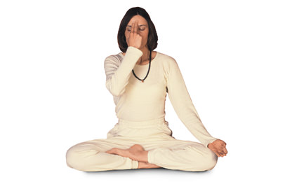 normal breathing, in the position inhale through the nose and exhale through the mouth